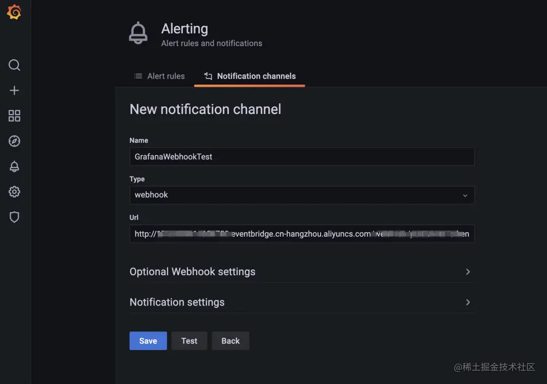 Grafana 上配置 Webhook