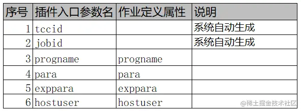 插件程序的6个统一入口参数,以及与作业定义属性的一一对应关系