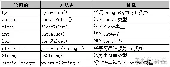每个包装类都可以和其他类进行转换,比如Integer包装类,转换的对应关系如下: