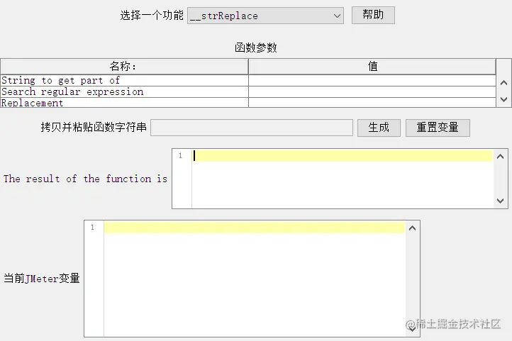 如:${__strReplace(jmeterfunction,j,J,)} ${__strReplace(${vchar},f,F,)} 直接对字符串或引用变量值,进行替换,都可以