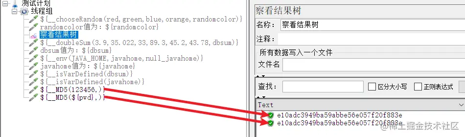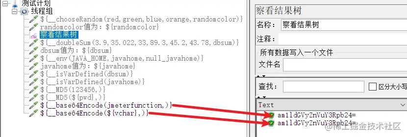 如: 定义一个变量 vchar,值为 jmeterfunction, 直接加密和引用变量加密,结果相同,说明第 1 个参数可以引用变量