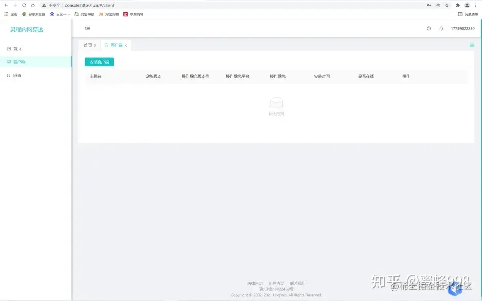 1、 打开灵曜官网www.http01.cn 然后进入 控制台 - 点击客户端