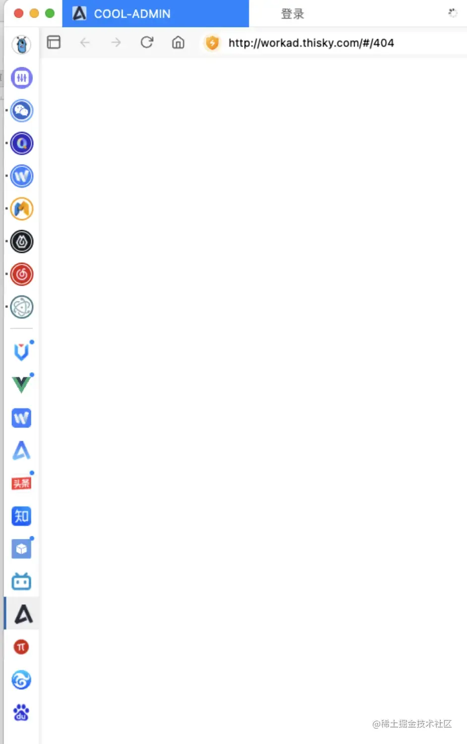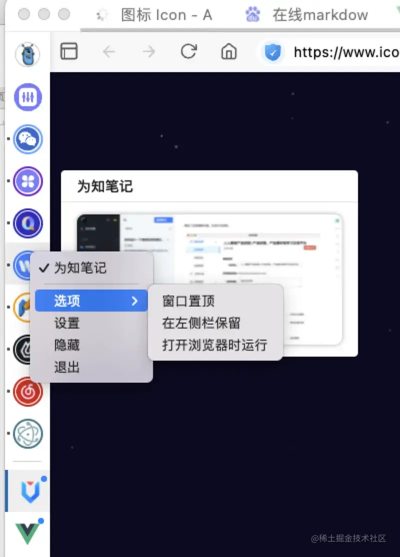 启动了的web应用,左侧会有小标记,类似mac的dock栏。
