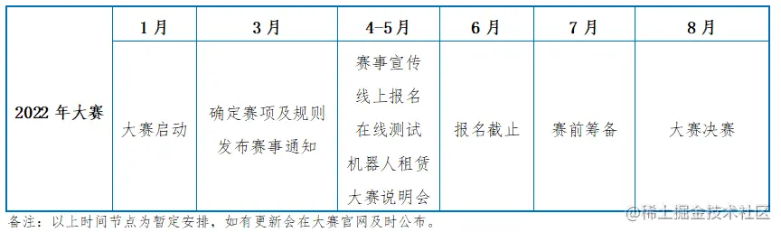 线上初赛线上初赛共发布5个关卡(共5道赛题,每道赛题总分20分,初赛总分100分),每个关卡都需要选手使用 python 编程,并基于关卡任务完成度获得相应得分。初赛总分数达到60分的所有队伍均可晋级线下标准赛,大赛组委会将为进入线下标准赛的队伍提供50个免费实体机器人,先到先得(其余进入线下赛的队伍可以自行准备机器人或向比赛组委会租赁机器人)。