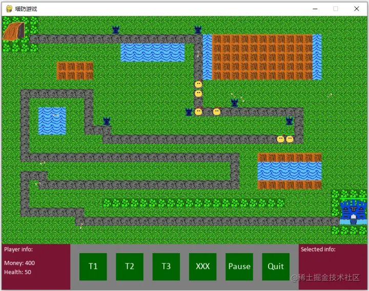 这款保卫防御塔的小游戏它界定了塔防游戏共用的三个核心机制: