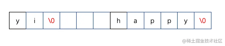 不了解的小伙伴可能不知道为什么后面多了个'\0',其实这个字符是空字符,也可以理解为C语言的“字符串终止符”。