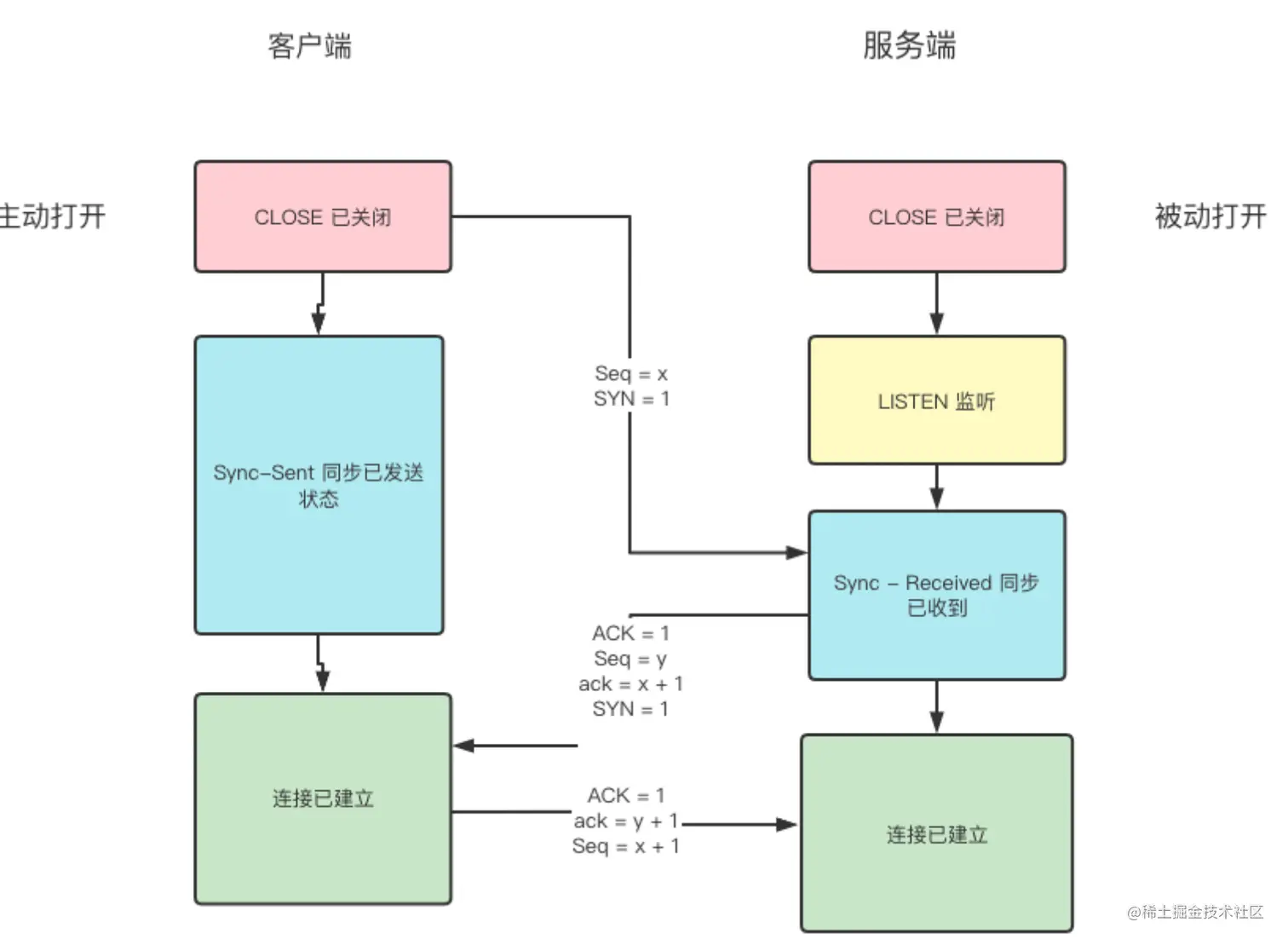 - 最后一步:当服务器收到客户端的确认,也进入已连接状态。