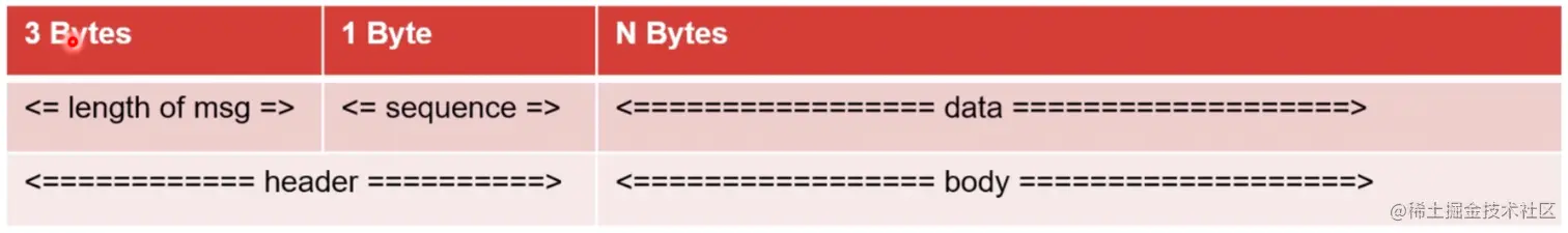 - 消息头:3个字节的报文长度,1个字节的序号