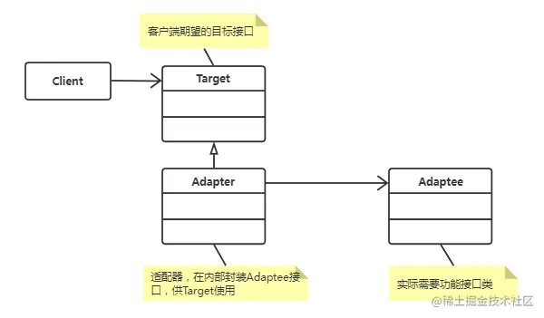 **「适配器模式」**将一个类的接口转换成客户希望的另外一个接口,使得原本不兼容的接口一起工作。