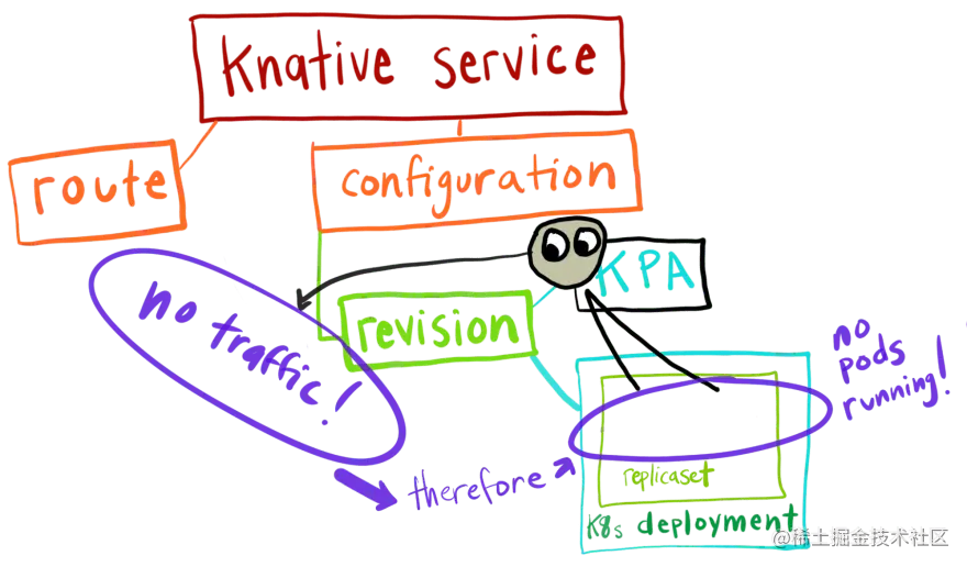 Knative Pod Autoscaler (KPA) 正在监视 Revision 收到的请求数量,并将根据需要自动扩展 Kubernetes 部署中的 pod 数量。 (再次,我将深入研究一下这里有哪些修订)。