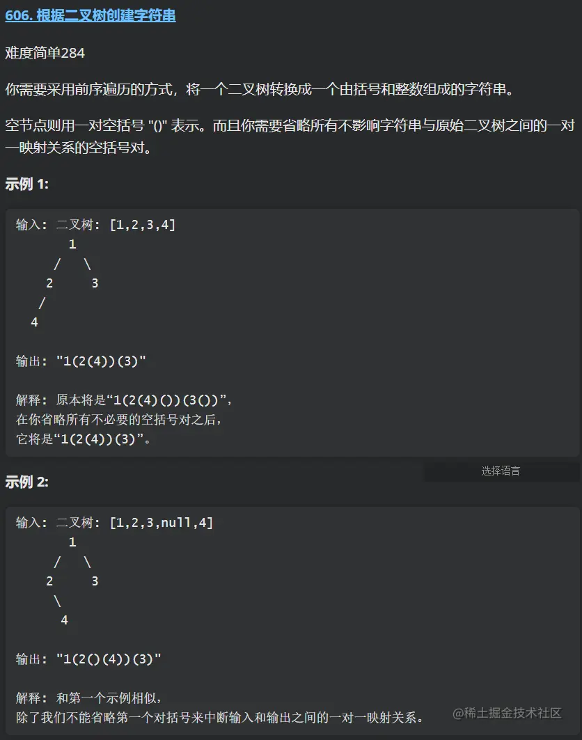 本次刷题日记的第 7 篇,力扣题为:606. 根据二叉树创建字符串 ,简单