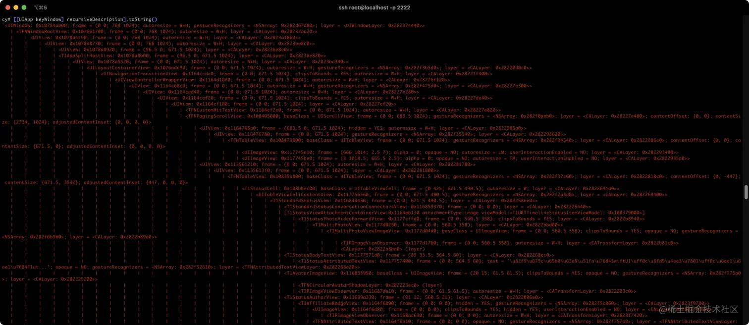 这里说明一下,Cycript 对中文的显示不太友好
