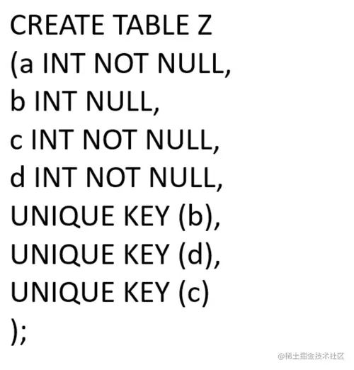 从上面的截图可以看到,字段a没有定义唯一索引,虽然它是非空的但是并不是唯一的所以不是主键,b虽然是最先定义的,但是他不是非空所以也不能作为索引,而d和 c虽然都是唯一索引并且都是非空列,根据多个非空索引取第一个定义索引为主键的规则,最终主键为字段d。