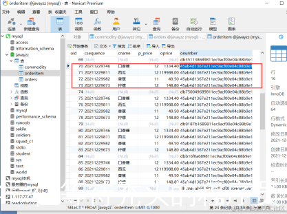 点击结账功能将自动生成商品订单!并且在数据库自动生成所对应的商品购买人的单号以及所对应的数据