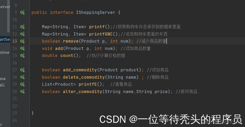 Map<String, Item> printfGWC();//返回购物车里面的东西
