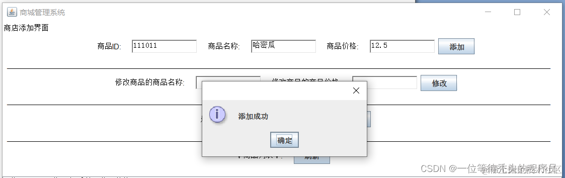输入商品的id,名称以及价格在点击添加就可以添加成功商品