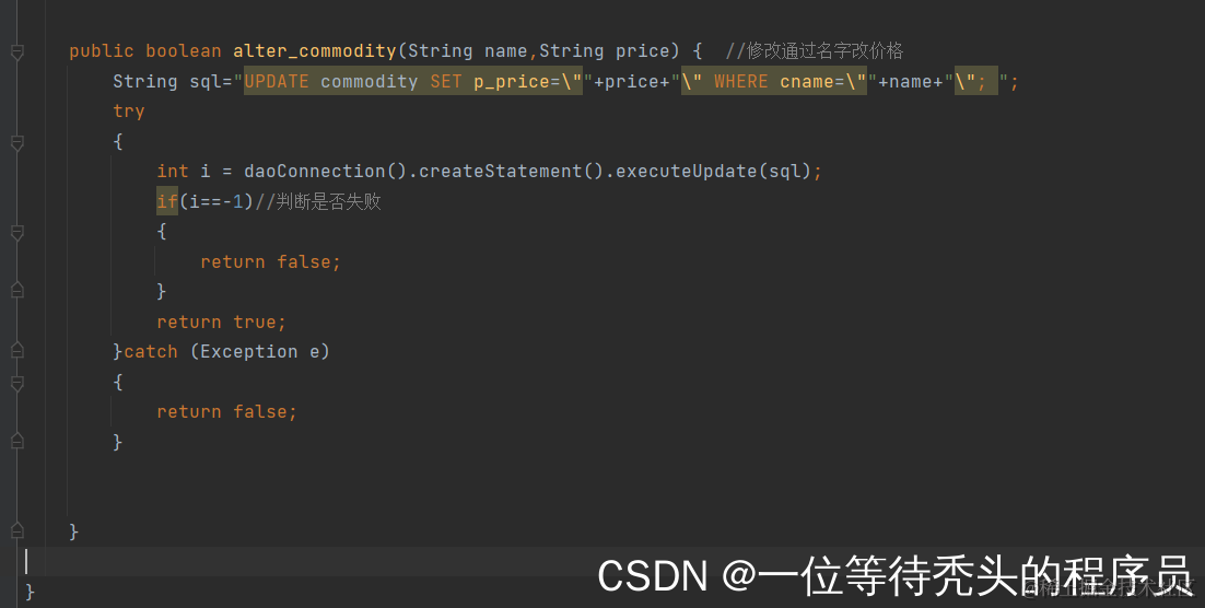 public boolean alter_commodity(String name,String price) { //修改通过名字改价格