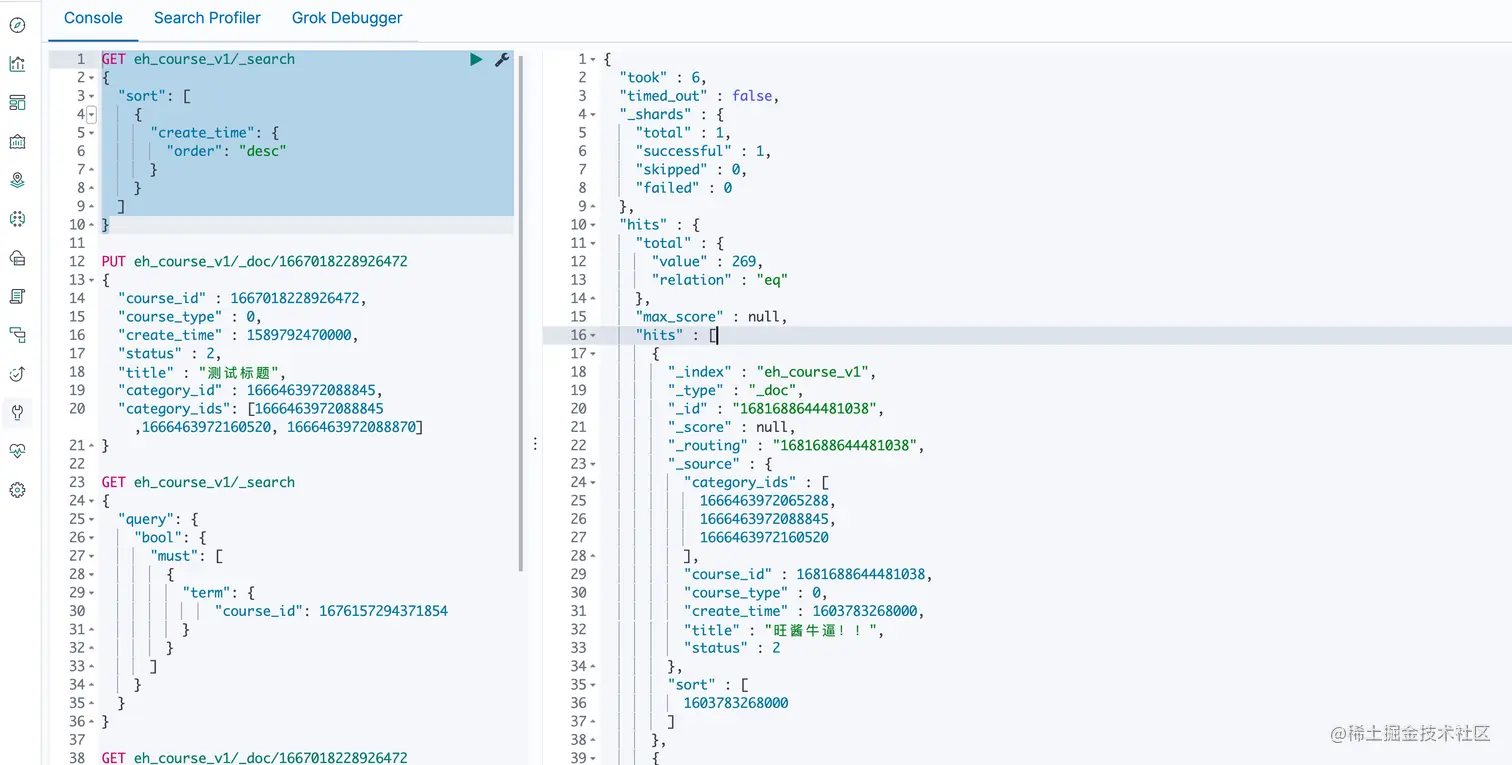 同步到es里就可以kinaba上查询数据了http://10.225.89.14:34450/app/kibana#/dev_tools/console?_g=()