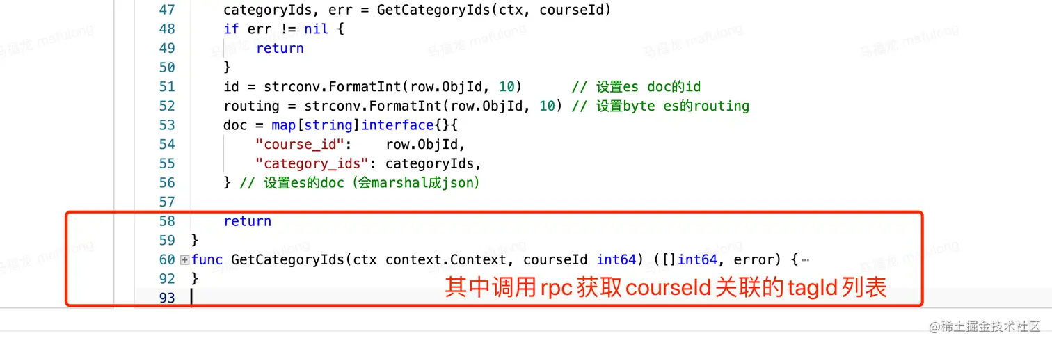 之后又有一个需求了,根据类目搜索course,类目是什么呢,类目是记录在另一个mysql表的,field有courseId以及tagId等,这个tagId就代表了一个类目,比如说这个course关联了类目“语文"。 因此在course搜索的基础上,将这个类目关联关系表的数据也同步到course搜索的es中,当类目变更时,更新es index。