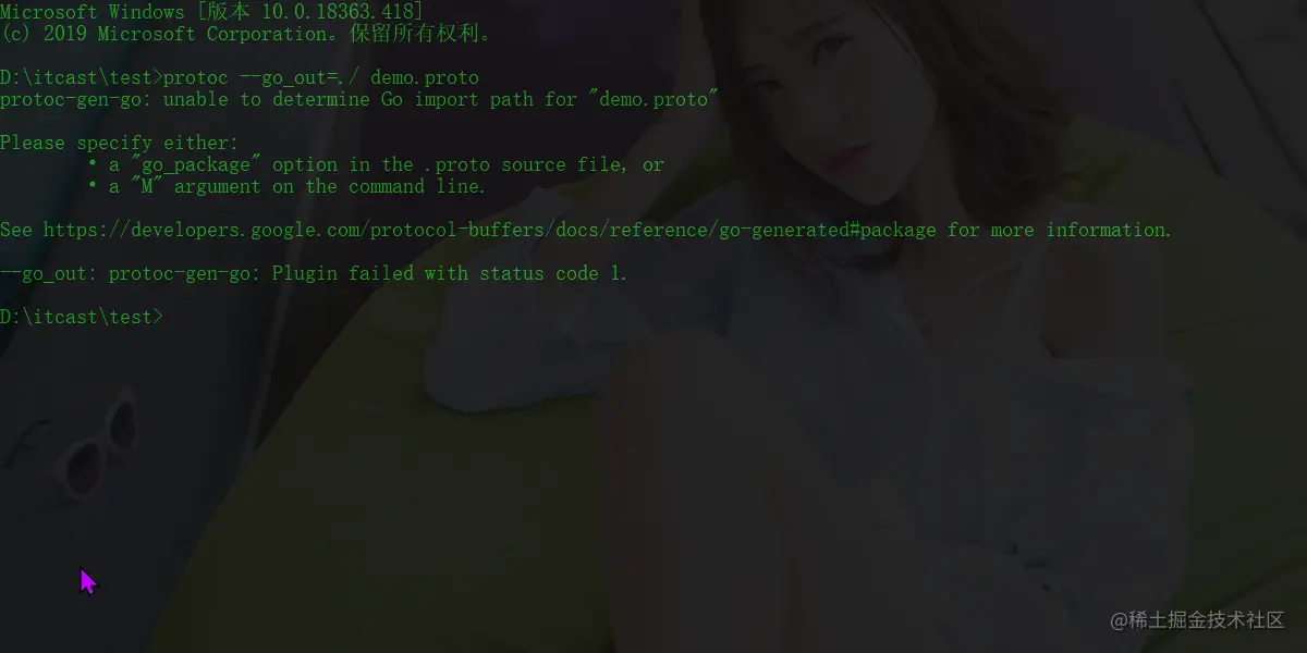 见具体错误信息 proto代码如下
