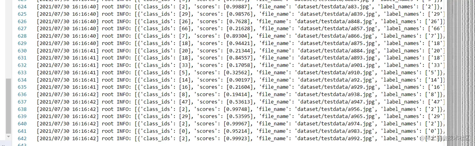 此外特别强调一下,每一行的日志不仅仅是一个文件的预测