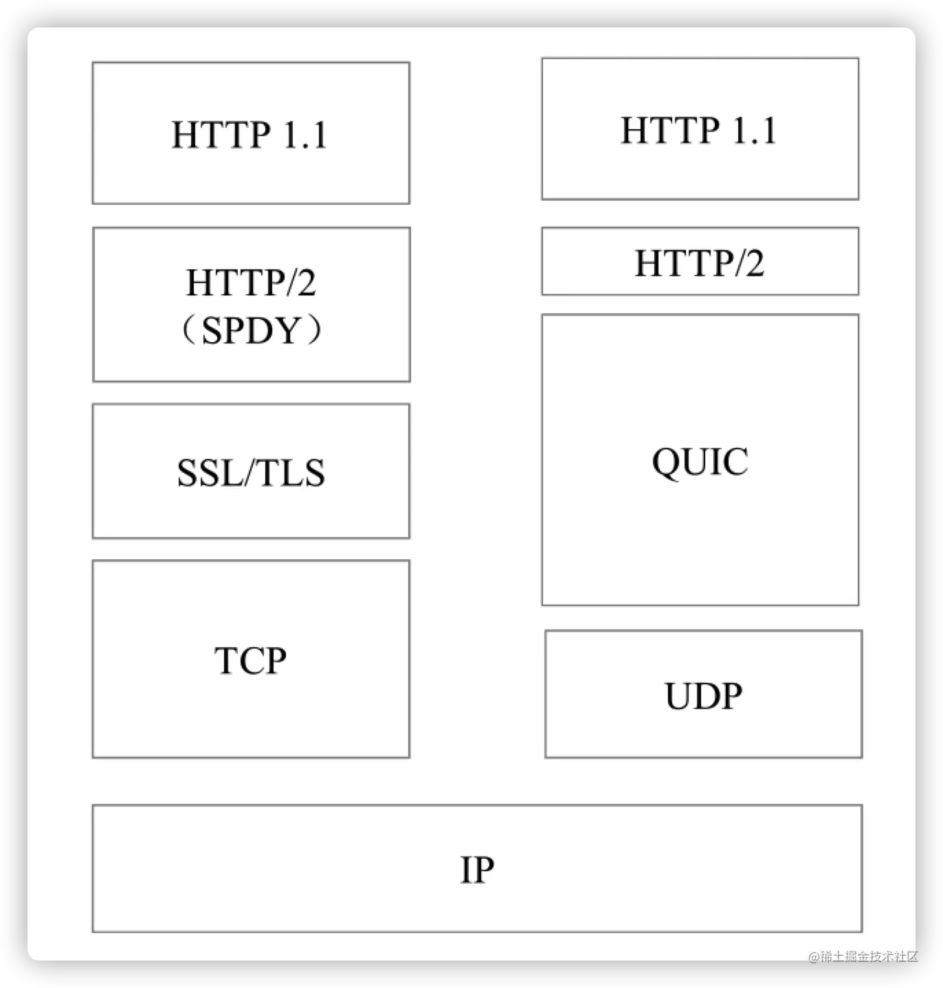 那么 QUIC 解决了无队头阻塞问题, 我们就可以很容易的想到因果关系, 那就是 QUIC 是基于 UDP 构建的. 在 QUIC 中丢失一个数据包不会减慢包中其他请求的速度