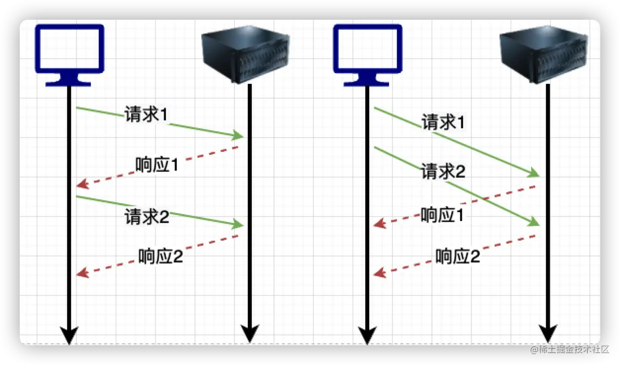 因为这个时候还存在一个问题, 请求是串行的, 客户端发送一个请求, 收到响应后才会继续发送下一个请求