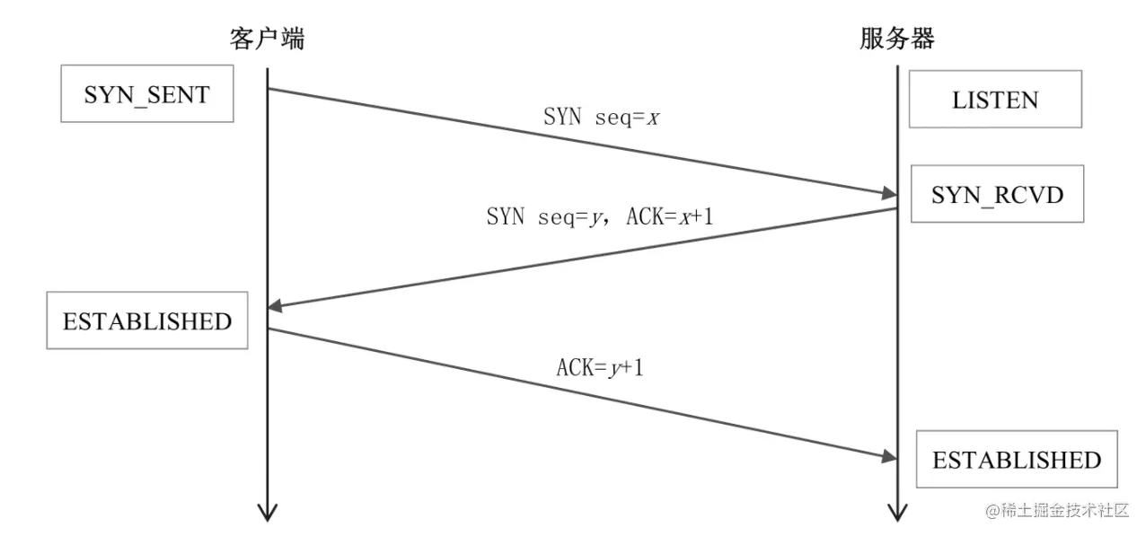 因此三次握手恰好可以保证客户端和服务器对自己的发送、接收能力做了一次确认。第一次,客户端给服务器发了seq=x,无法得到对方是否收到;第二次,对方回复了seq=y,ACK=x+1。这时客户端知道自己的发送和接收能力没有问题,但服务器只知道自己的接收能力没问题;第三次,客户端发送了ACK=y+1,服务器收到后知道自己第二次发的ACK对方收到了,发送能力也没问题