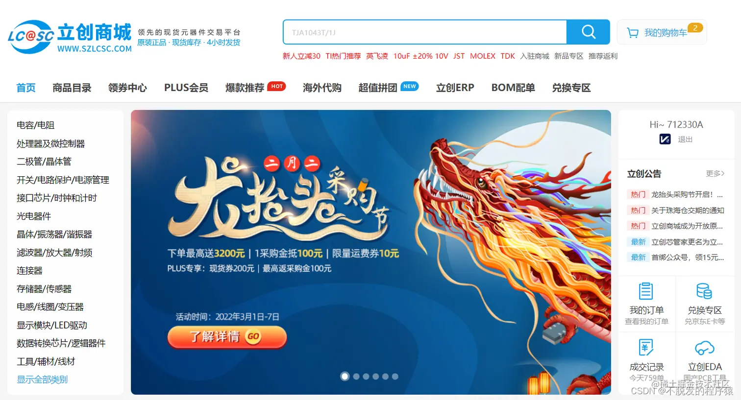 网站:立创商城_电子元器件采购网上商城_领先的现货元器件交易平台-嘉立创电子商城