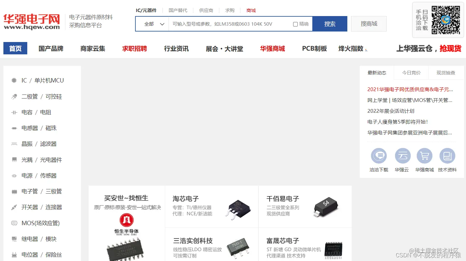 网站:华强电子网-IC/电子元器件材料采购交易平台 Hqew.com