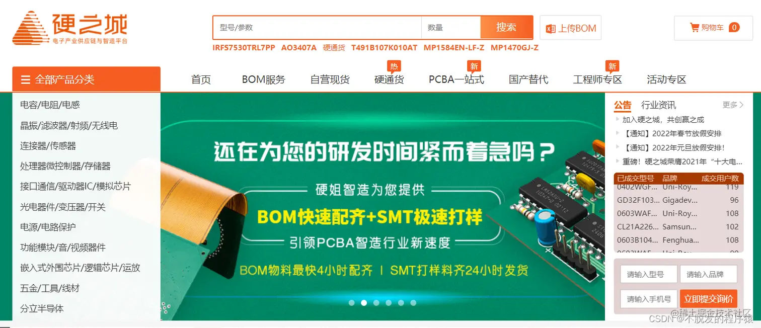 网站:云汉芯城ICKey.cn_电子元器件采购_BOM配单_SMT贴片_PCB打样