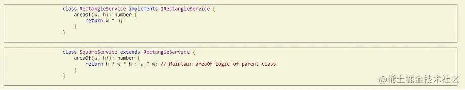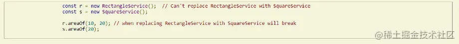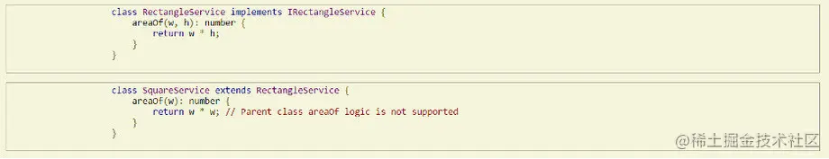坏实践: 如果用 SquareService 替换 RectangleService, 传两个参数的计算方式将破坏原始行为。