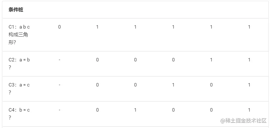 构成三角形的条件如果不满足的话,结果都是非三角形,和下面三个条件无关,这种情况下可以对判定表进行简化。