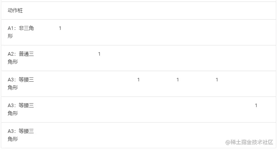 确定动作桩 A1:非三角形;A2:不等边三角形;A3:等腰三角形;A4:等边三角形;A5:不可能。