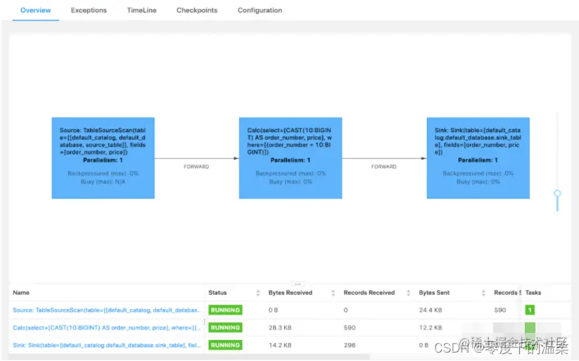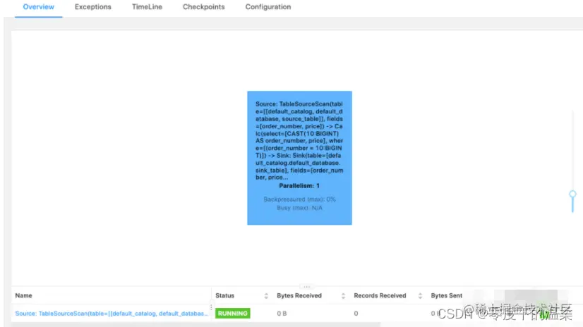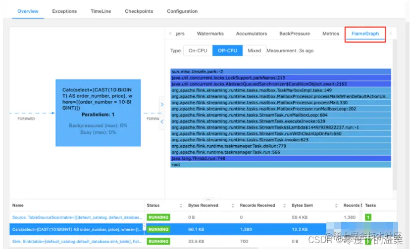 若颜色为红色,表示当前算子繁忙,有反压的情况;若颜色为绿色,标识当前算子不繁忙,没有反压。