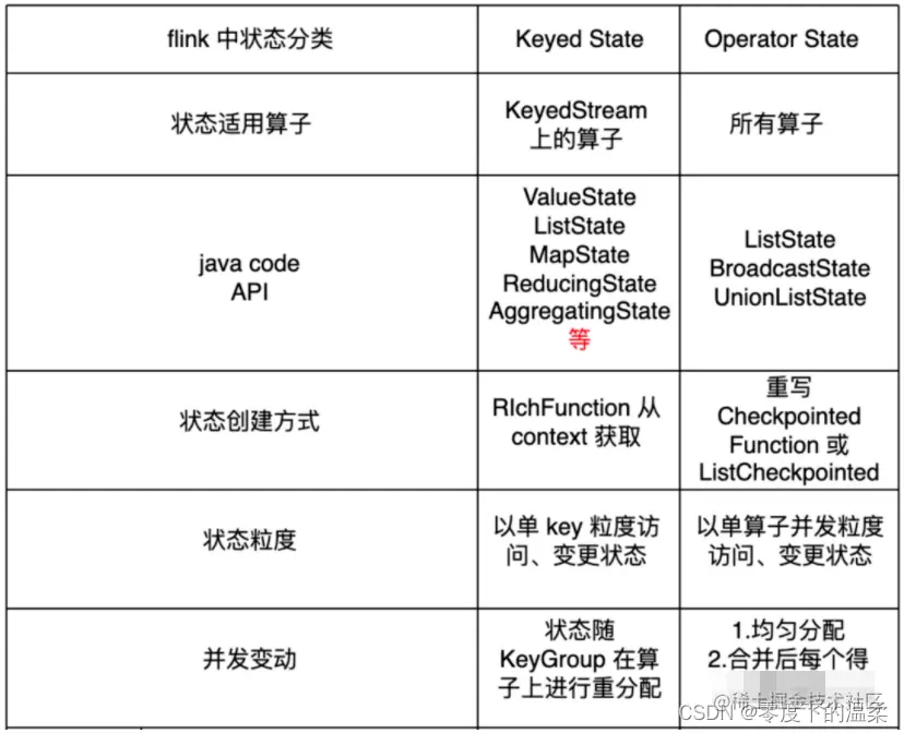 - 状态的创建方式:从 context 接口获取具体的 keyed-state