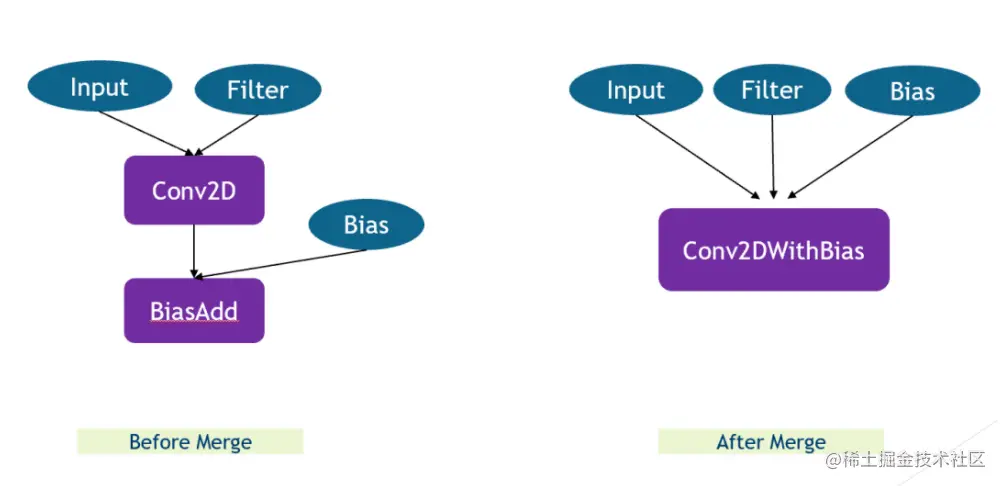 所以在做算子融合的时候本质上便是把多个 Tensor 整合到一个 Node 下。虽然只是简单的算子融合,但是在计算过程中可以提高速度。