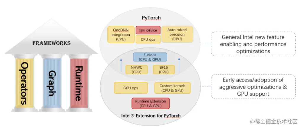 我们已经将大部分优化上传到 社区版本的 PyTorch 中,同时还保留了一个单独的英特尔 PyTorch 扩展包(Intel® Extension for PyTorch* (IPEX))作为目前尚未upstream的这些优化的一个缓冲区。