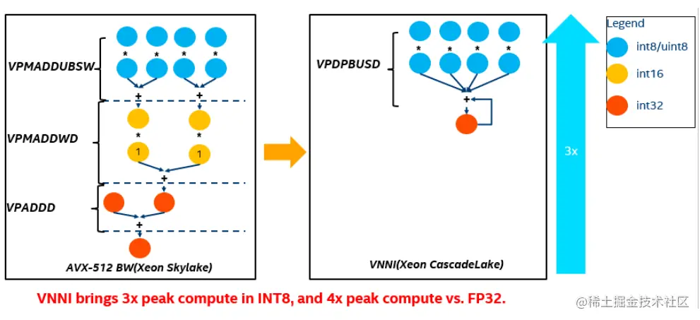 图2. 利用基础AVX 512 vs. 利用AVX512 VNNI 做向量乘加