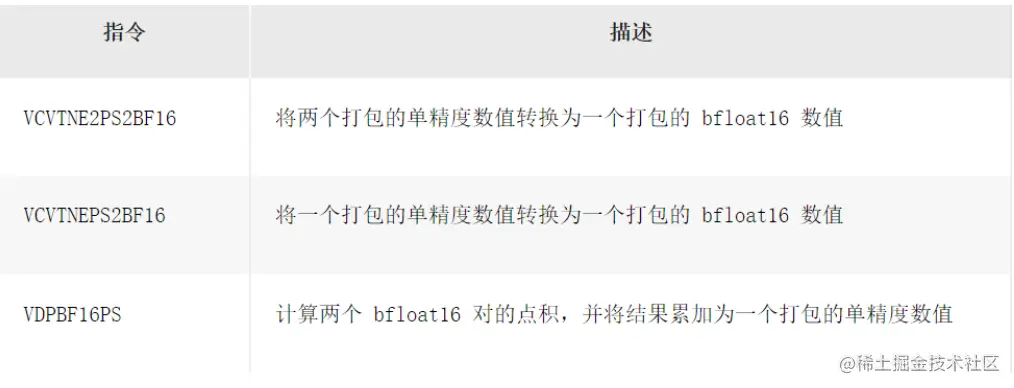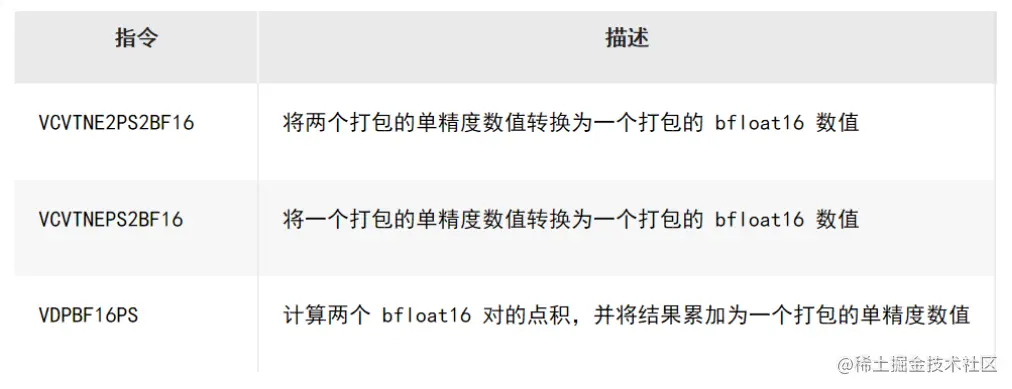 英特尔® 深度学习加速技术包括以下 BFloat16 指令: