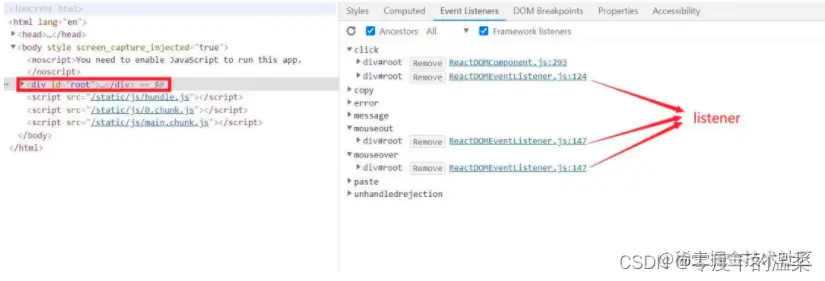 目前,注册阶段的工作已经完成,下面会讲一讲事件是如何被触发的,让我们从绑定到root上的监听器切入,看看它做了什么。