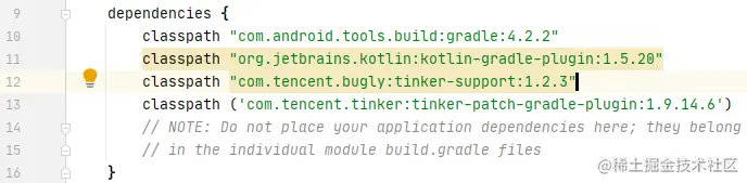 所以解决问题的办法就是如果你的gradle版本比较高的话你的tinker-support的版本也要用较新的版本,如果匹配不到的话不妨多试试几个版本。