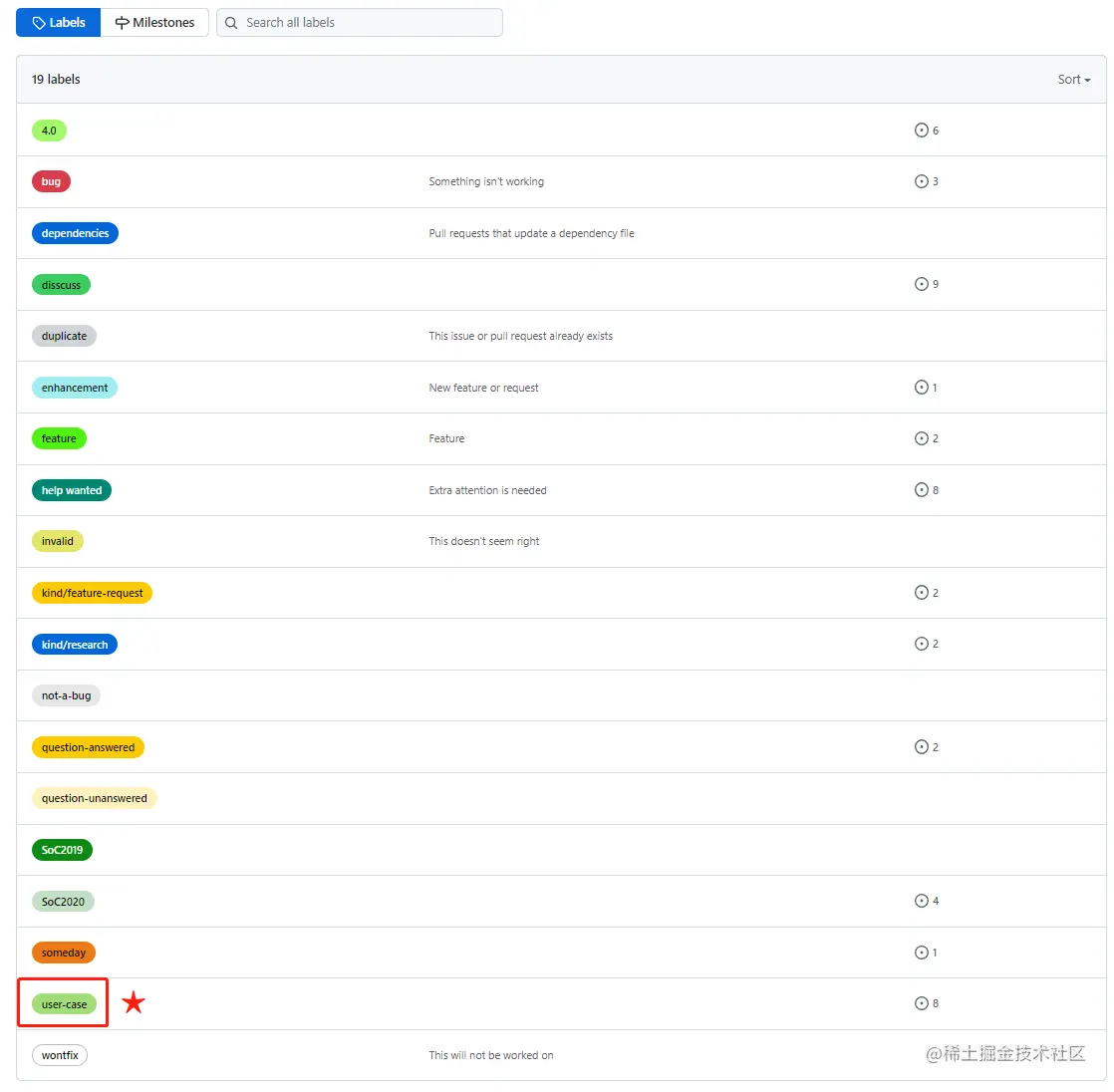 点开 Labels,你会发现有个叫做 user-case 的标签: