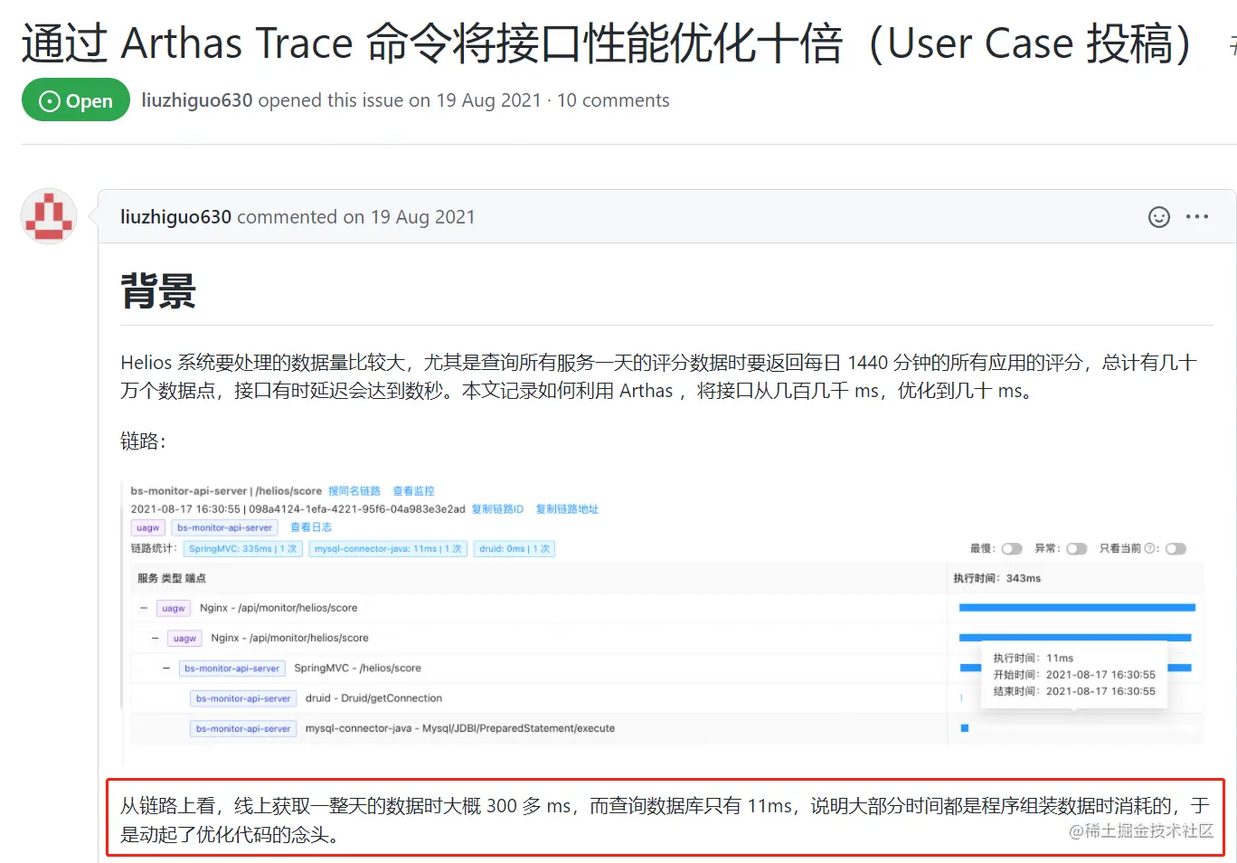 然后,他给出了结论,也就是这次优化的点: