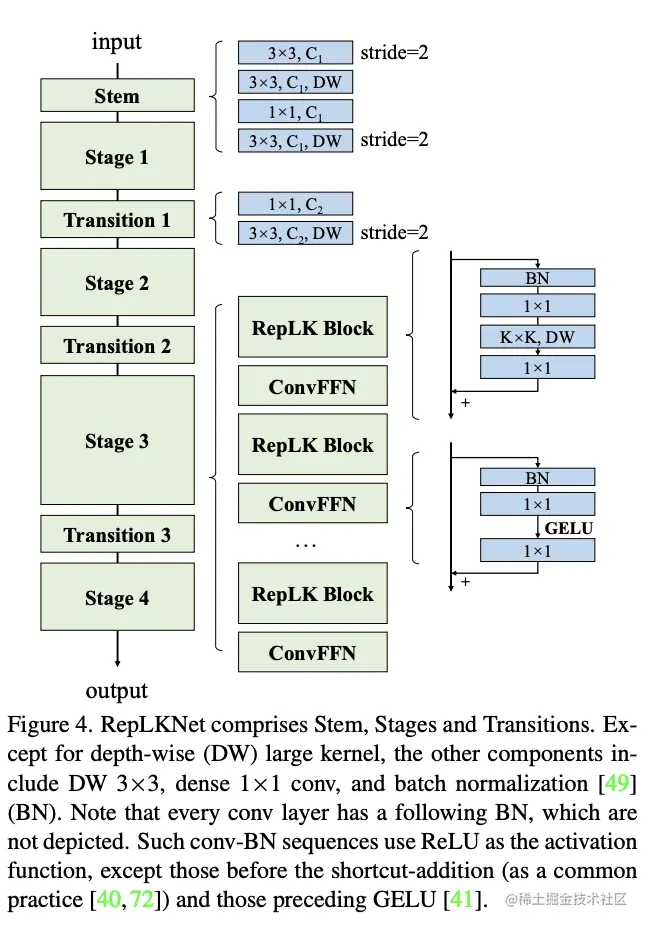 RepLKNet的结构如图4所示,各模块细节如下:
