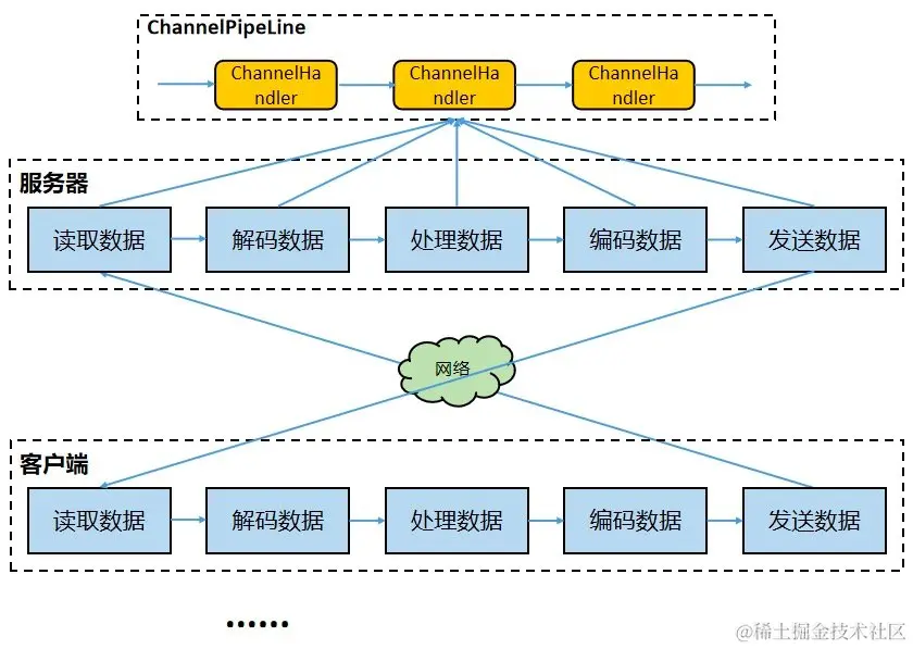 - ChannelPipeline 和 ChannelHandler 机制类似于 servlet 和 Filter 过滤器,这类拦截器实际上是职责链模式的一种变形,主要为了方便事件的拦截和用户业务逻辑的定制。