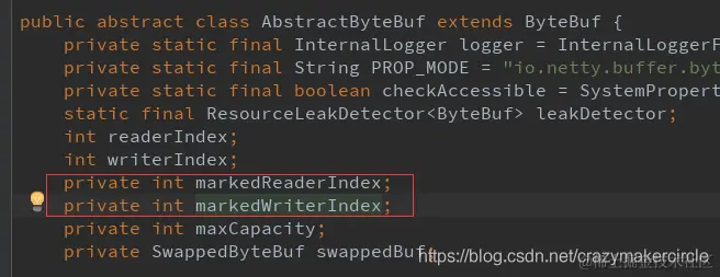 标记 markedWriterIndex 属性, 定义在 AbstractByteBuf 抽象基类中。