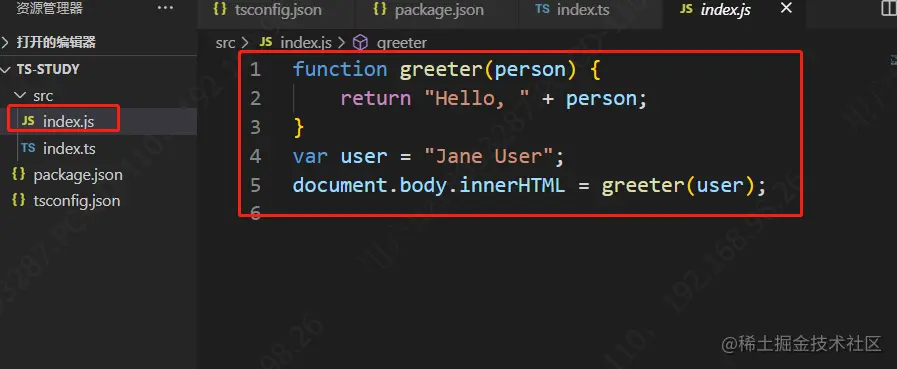 我们接着上面的index.ts,我们改写下,改成来打印greeter(user);