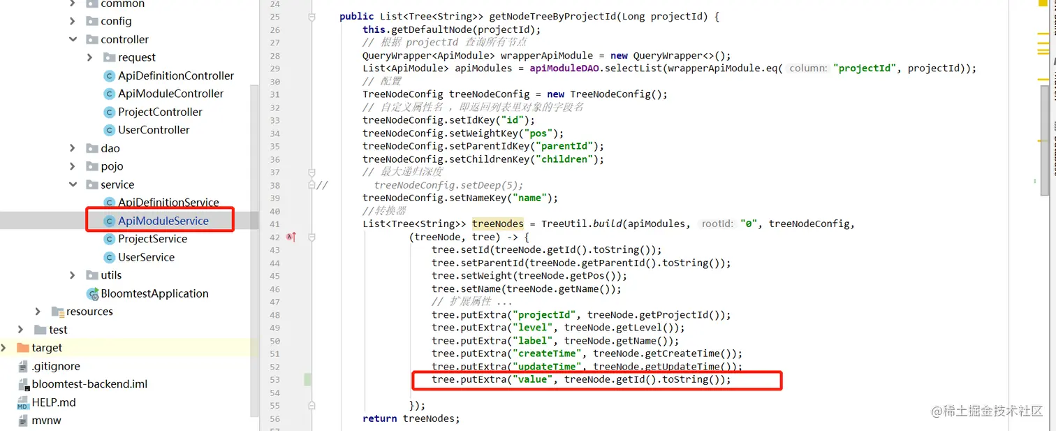其实这里模块节点里要用的数据,就是左侧模块树的数据。