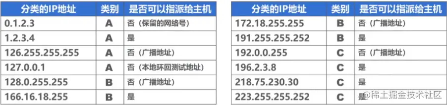 不能派给主机或路由器接口的地址: